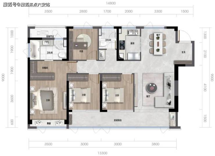 建面约111㎡大三房户型完全依照“正、大、景、明”的空间营造标准。极为方正户型设计,显著提高了空间利用率。
