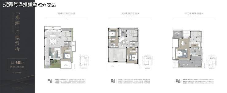 户型面积:主要有建筑面积约300㎡、340㎡、870㎡三种,均为三层设计。