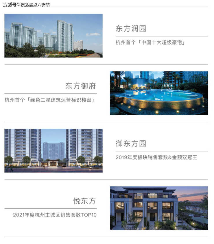 自然,在这个过程中,杭房也留下了一系列经典项目,比如我们所熟悉的杭州首个“中国十大超级豪宅”东方润园、杭州首个“绿色二星建筑运营标识楼盘”东方御府,钱江御府、御东方等;