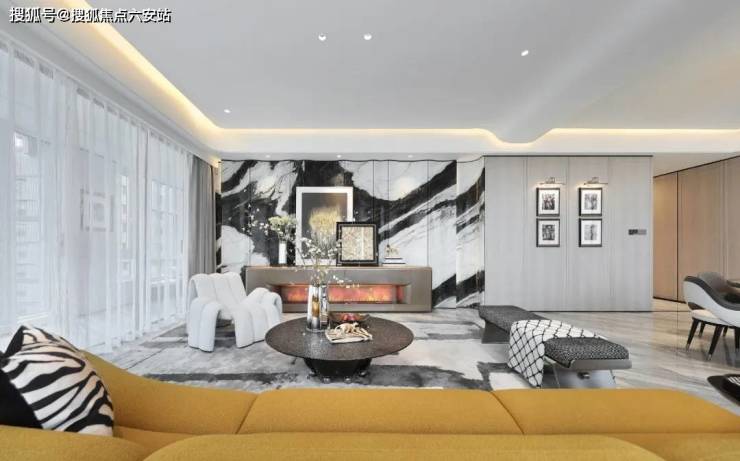 滨江海潮望月城大平层采用中古现代风设计,将古典的优雅与现代的简约完美融合。灰白色与黑色的主色调,搭配玉石质感的石材,营造出一种简约而不失高级感的居住氛围。在这里,您可以感受到时间的沉淀与艺术的永恒,享受一场视觉与心灵的双重盛宴。