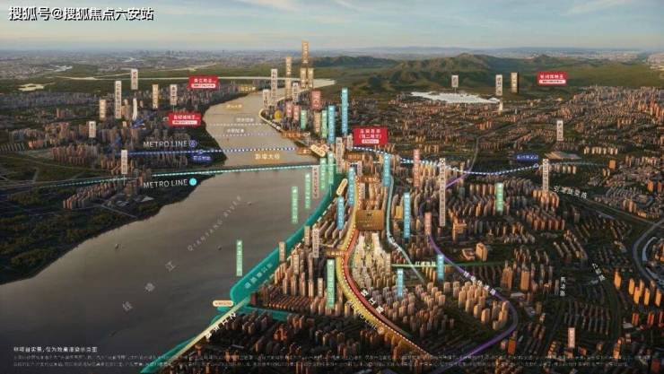 潮岸绿境:约3.6公里沿江景观带,约200万方海塘安澜工程,,沿途规划4大公园、5个观潮平台及7组以“潮”文化理念单体建筑。
