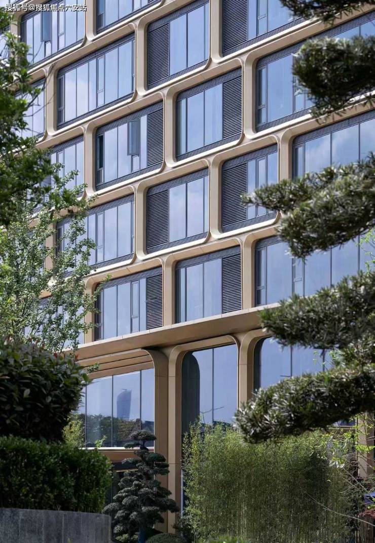 金色铝板曲面线条模拟浪涛起伏,搭配Low-E玻璃幕墙,光影流转间呼应钱塘江潮汐;