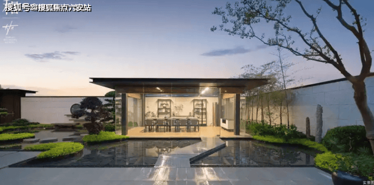 园林景观汲取中式传统园林与东方建筑底蕴,取自珠宝之形意之美,又归于自然的造景艺术,营造一方可望、可行、可游、可居的园林逸境。