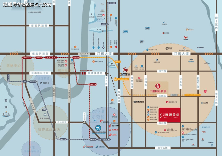 配套设施:交通:有轨道交通7/8号线,地面涵盖江东大道、梅林大道、红十五线,地上有钱塘快速路,可快速通达长三角的苏绍台高速,临近萧山机场、规划中的钱塘高铁站等。