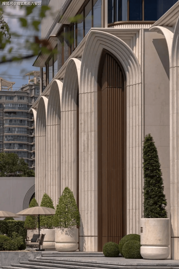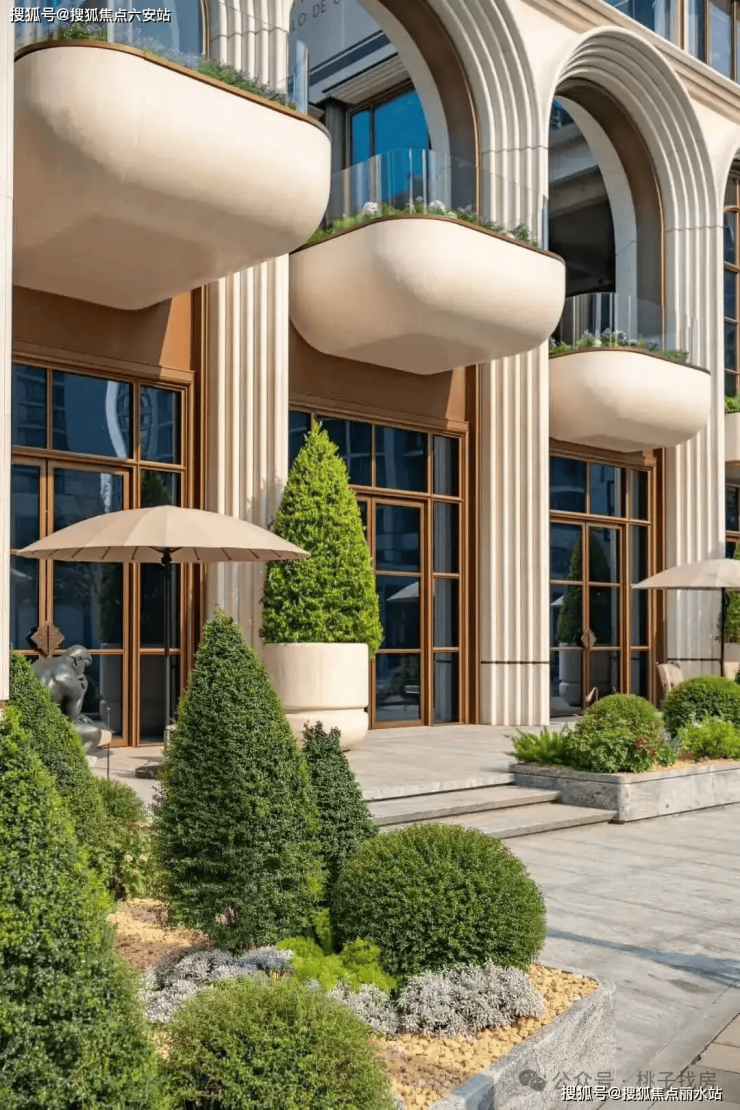 立面美学:采用西班牙贝金米黄石材、古铜色金属线条、大面LOW-E玻璃,融合意式拱券与新古典秩序,打造“运河畔的建筑艺术馆”。