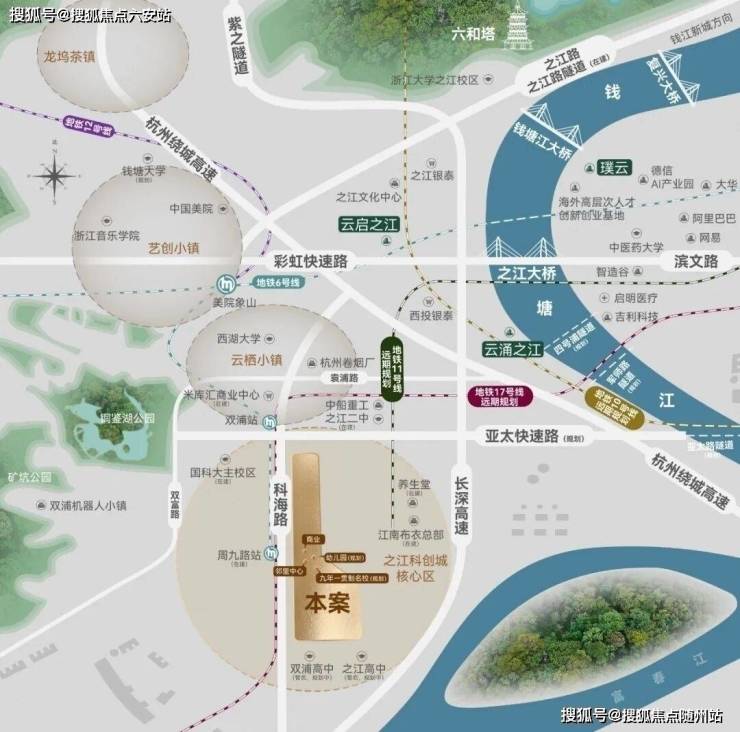 之江科创城是西湖区重点发展的板块,被称为对标奥体世纪城的沿江风貌区和几大产业科创集群。板块内高能级的产业往往带来高收入的高精尖人才,会促进板块内教育、文娱、绿地等配套的持续完善。该区域还规划预留了地铁17号线,一旦获批,将形成3条地铁线路,通达全城。在未科、滨江、奥体工作的年轻人溢出效应下,云之城将迎来持续的价值提升空间。