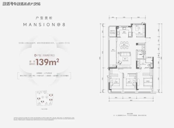 项目提供106-169㎡全周期户型,覆盖首改至终极改善需求。139㎡三房两卫设计,四开间朝南,南向面宽12.5米,双联阳台连接客厅与次卧,主卧配置独立卫浴及衣帽间。