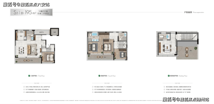 上叠(188-195㎡):顶层星空露台,兼具私密性与景观视野,契合高端客群对“空中花园”的向往。