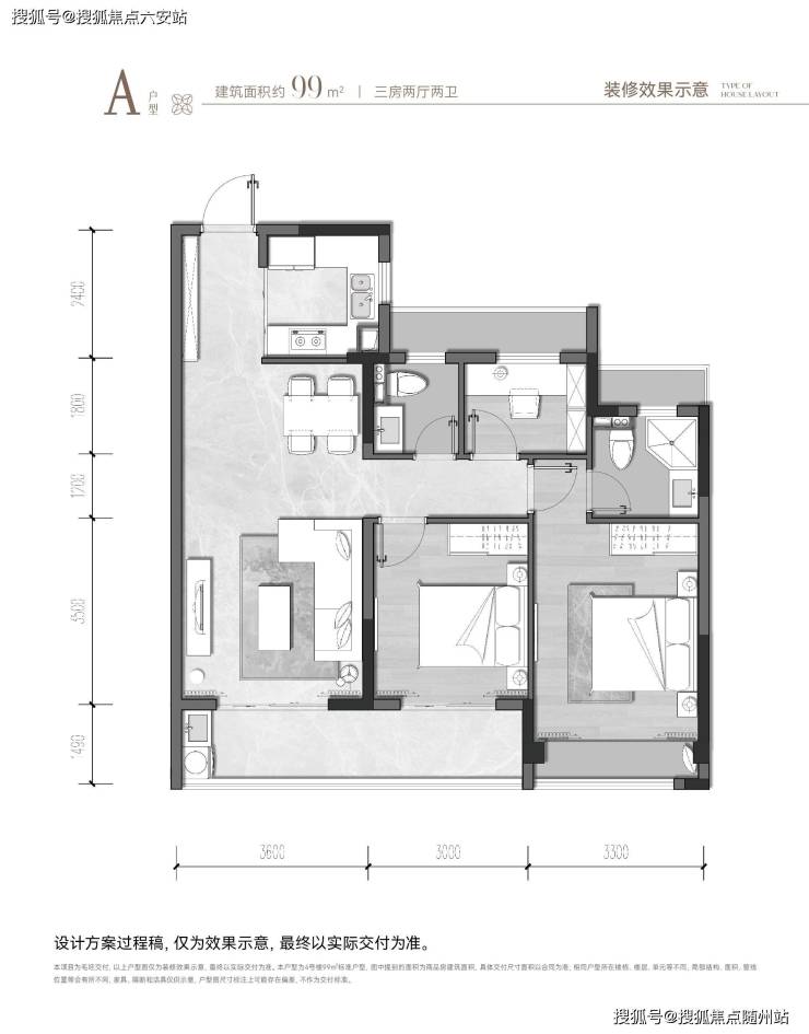 99方-舒适三房|约80%超高得房率,同样面积,更多空间布局(双开间阳台)