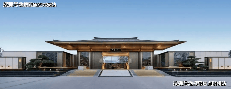 小区大门为歇山顶大门,形制媲美故宫乾清门,宽约53米(含景墙)、高近11米,鸱尾微翘,门两侧各置一块价值百万的蓝翡翠奢石,匹配高约2米(含基座)、重约600斤铜狮镇宅,搭配罗汉松迎客造型树,高定气场扑面而来,再设七级台阶,寓意步步高升,仪式感十足,中式的尊贵感从归家开始就把情绪拉满。