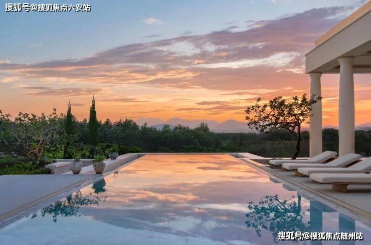 顶部局部悬空的景观泳池,增加场所的休闲度假感,其设计的巧妙之处在于水面的视线可延伸至夕阳,当晚霞洒满天空,仿佛置身于天空之境。