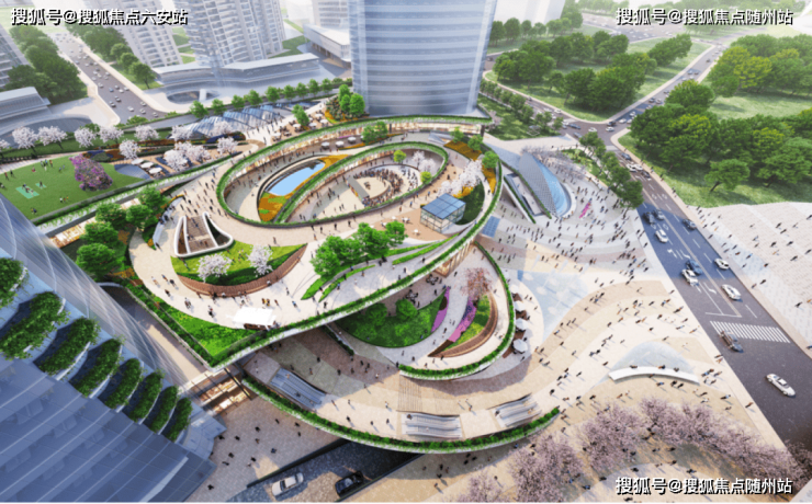 项目以“脉动绿丘”为概念,通过生态螺旋、创享螺旋、运动螺旋建构景观层次。全开放式屋顶公园衔接奥体公园绿化,让业主在都市核心区享受“森呼吸”生活。