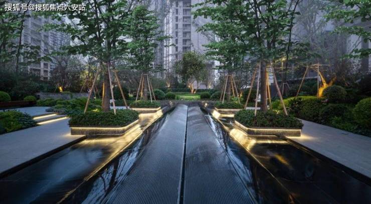 中央度假水庭会所,延续江湾海浪印记,复刻大江震撼场景,以书页水景艺塑致敬天一阁,展现宁波「书藏古今」的底蕴;并点缀精致热带植物,营造度假感。
