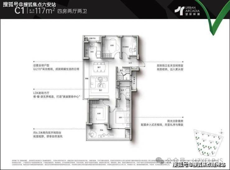 不仅做到了大边厅+四房,而且还带一个进深约2米的转角阳台(很多豪宅阳台进深也不过1.8米),就像自带一座空中花园。