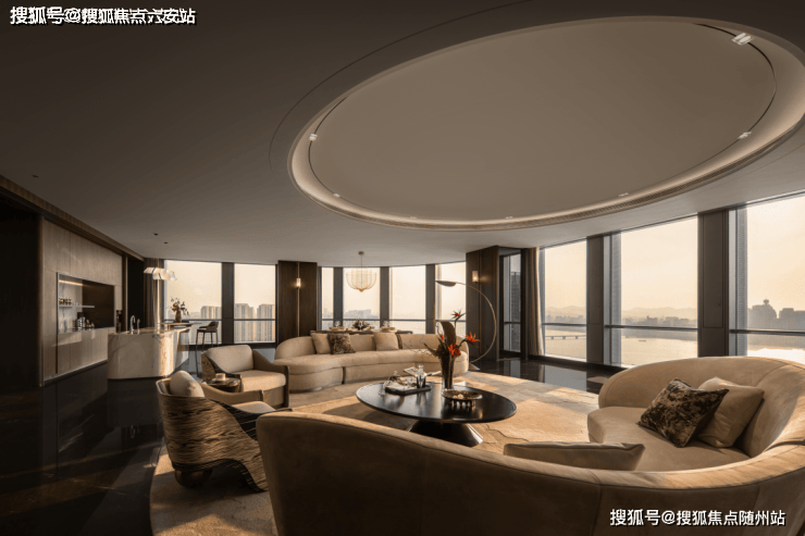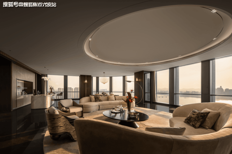 七星潮鸣打造430-875㎡精装行政公馆,层高4.2-4.3米,远超普通豪宅标准,搭配270°弧形落地玻璃,营造宫殿式恢弘尺度。