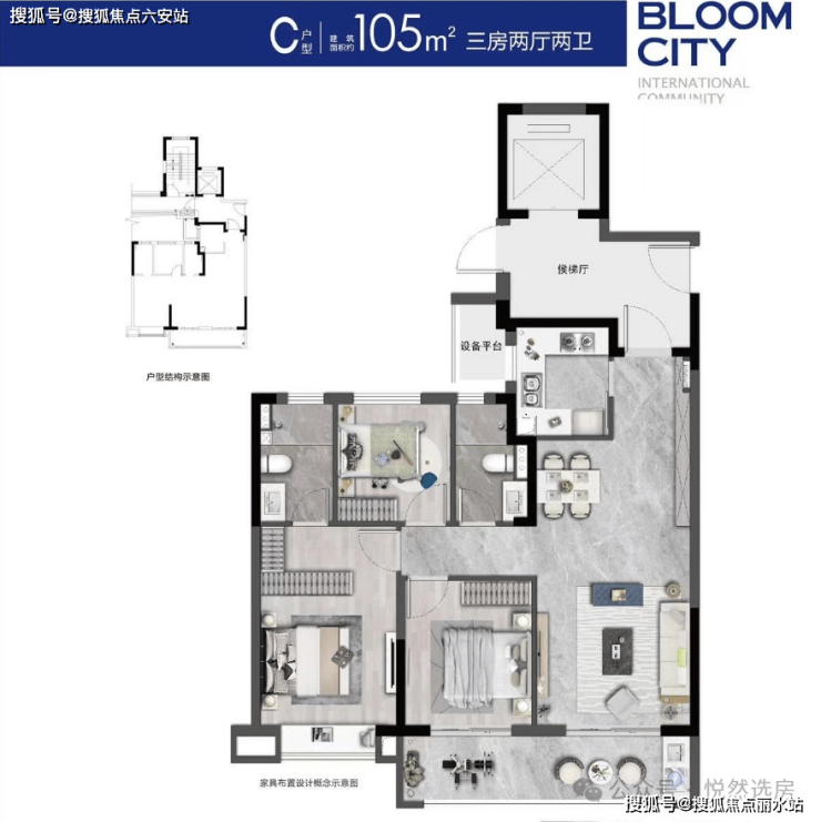 户型设计:户型面积段为 80-139㎡,涵盖二居室、三居室、四居室,可满足不同家庭的置业需求。例如 105㎡的三房两厅两卫户型,三开间朝南,户型方正,南向双卧;U 型厨房设计,操作台面大;三段式干湿分离双卫设计,方便生活起居;主卧套式设计,自带独立卫浴、衣帽间与飘窗。📲【售楼热线】:400 832 8823【一对一热线】