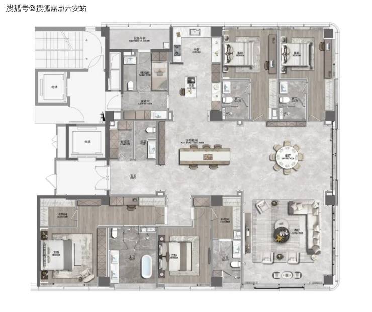 梁志天&上海世尊共同执笔:410㎡湾潮户型:WSD上海世尊团队执笔,以独一无二的“摩登东方”设计语言,抽象提取东方写意精神,与复古摩登、自由艺术平衡相融,领潮钱湾黄金时代。