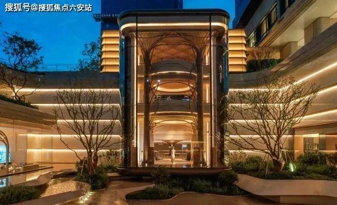 因项目整体抬高,从下沉庭院到架空层“空中花园”的落差极大,形成独特的峡谷地貌,杭序府的设计团队汲取九溪烟树为造园灵感,打造一个立体多维的城市溪谷交互园林;因项目毗邻江岸,杭序府的外立面以“站立的江潮”为灵感,大面积弧形玻璃与四层堆叠的石材线条,将钱塘江潮的千钧之力和流水之韵凝练于建筑肌理之中。