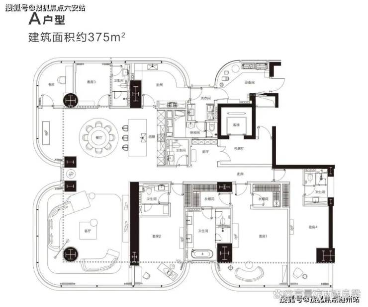 商业大平层产品力的天花板 ,建面约375㎡+赠送100㎡ 93%得房率