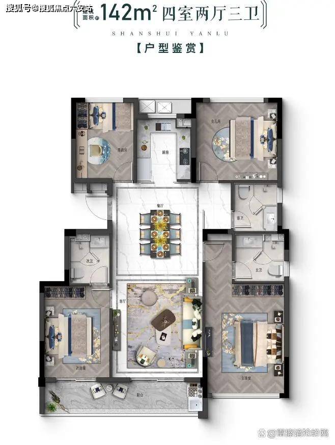 叠墅面积:约142方(带地下储藏室和花园,地上142+地下142,共284方)
