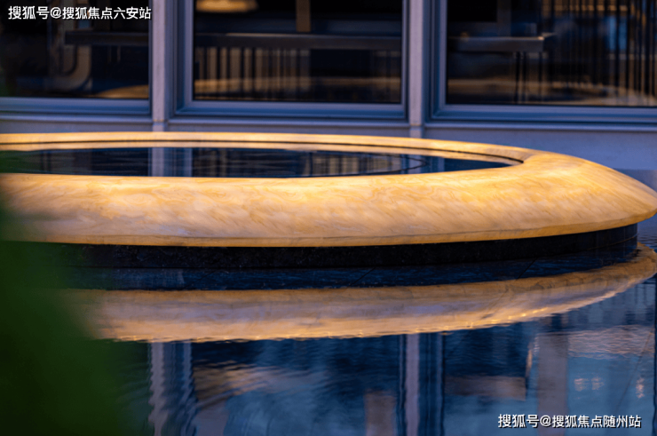 景观设计由大师宋淑华执笔,以法式古典主义园林为骨架,融入西湖郭庄的宋韵意境。园区以中轴景观序列展开,入口处打造约43米宽景观轴线,设置熔铜艺术雕塑、叠石飞瀑等节点。中轴水景宛如展开的宝石匣:池畔蓝翡翠奢石采自马达加斯加稀有矿脉,被誉为石材界的“爱马仕”。冰蓝底色中游动着亿万年前形成的云母纹路,水池中的采光井镶嵌的西亚白冰玉,透出朦胧光晕,与水面形成“镜中月、水中月、天上月”的奇观。园林移植名贵树种,形成“湖—园—宅”交融的绿界。四株70年老桩紫薇,每棵价值高达数十万,盛夏时数千朵紫花如瀑布倾泻;6棵珍稀丹桂经园艺大师修剪,树冠呈现完美的黄金比例椭圆。园林设计淬炼法式古典主义园林,采用中轴设计景观,勾勒湖园交融的公园绿界。融合在地文化,移植名贵树种,甄选奢石造景,呈现高贵、优雅园林体验。
