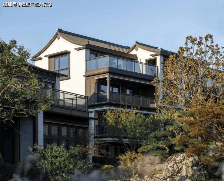 ● 三面茶山环保低密新中式栖居,1.1超低容积率● 新中式园林主题,1000㎡高端会所● 上下叠挑檐造型设计,阻隔视线,增加层次