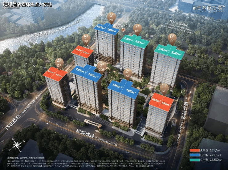 翠隐江粼的主力户型为建面约161㎡、185㎡和230㎡。所有户型均采用两梯两户设计。尤其值得一提的是,建面约185㎡和230㎡户型还拥有全明采光、景观视野出色的电梯厅。