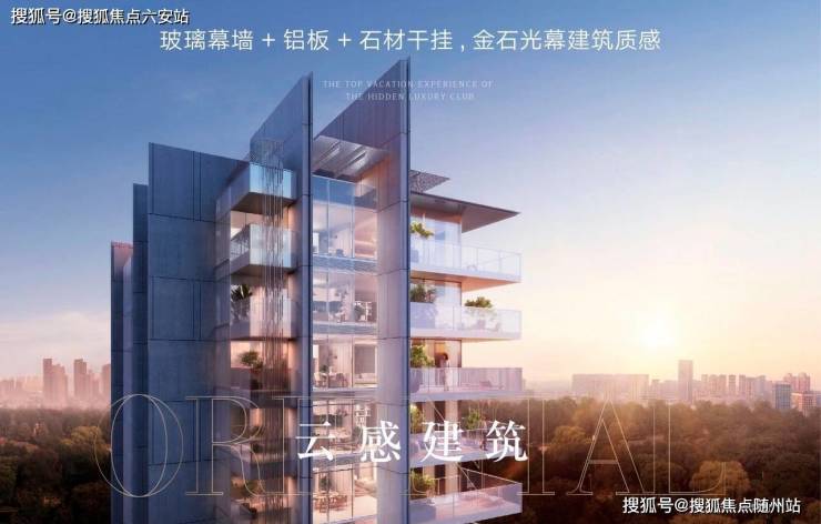 云感建筑:全玻璃幕墙+铝板+石材干挂,以“金石光幕”质感,在双河倒影中勾勒出流动的建筑轮廓;