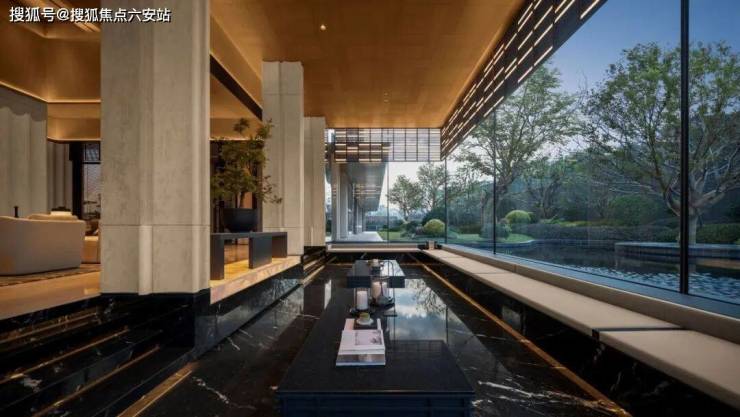 项目入口处113米宽的酒店式门头,采用香格里拉奢石与贝金米黄石材,这种投入力度在同等价位项目中不多见。在景观设计上,依旧利用框景美学,打造“四时四景”的不同感受。而准现房的打造,让项目在交付时即呈现出成熟的园区景观,避免了新项目常见的景观空窗期。