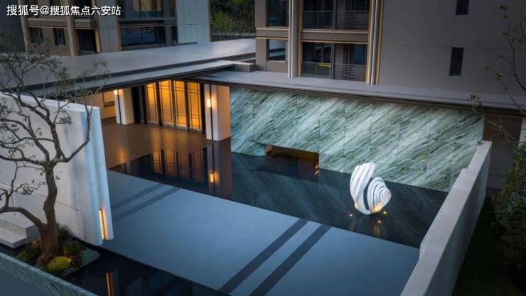 113米恢弘入口,三重归家礼序,于都会之中,邂逅无尽自然之境。首进院:酒店式归家门庭;次进院:森林溪境漫步游园;末进院:定制酒店式归家入户。主入口采用天然石材+艺术雕塑堆砌大气高级感入口。