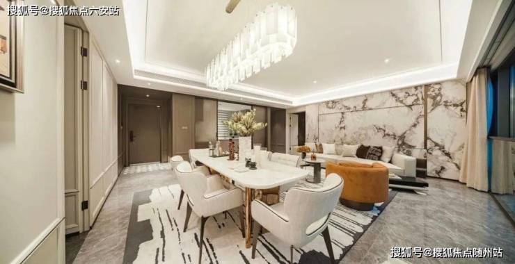 值得一提的是,约55平的宴会级无界方厅,采用LDKB一体化设计,将客餐厅、厨房、阳台全部打通,形成一个开放灵活的多功能聚厅。