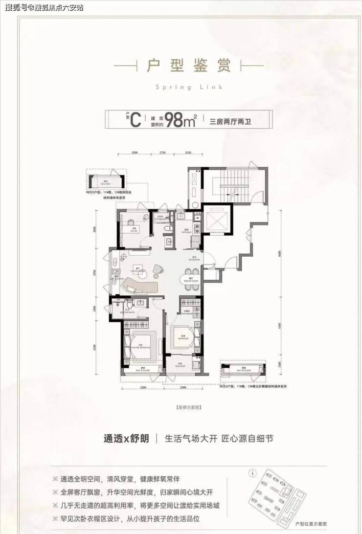 89-114㎡:3室2厅2卫(89㎡/98㎡/114㎡),总价约212-272万。