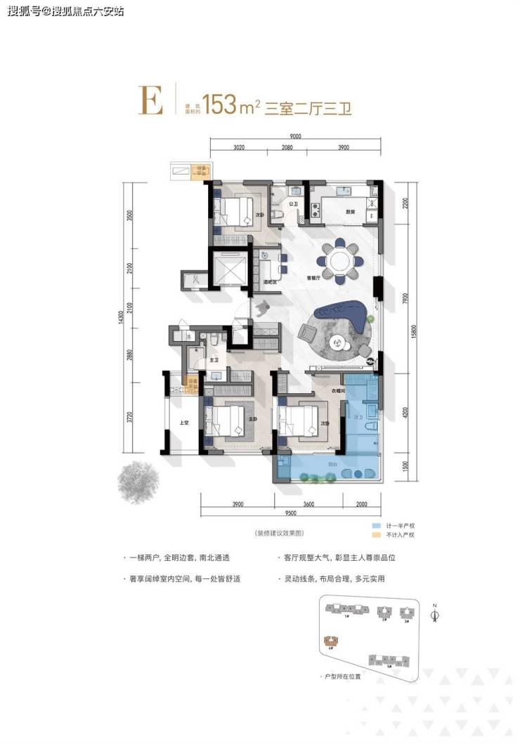 1.本宣传物料所示仅为家居配置示意用途,图中家电、家具、设施、设备等非交付标准;具体交付标准、户型、产权确认以双方签订的《商品房买卖合同》为准。