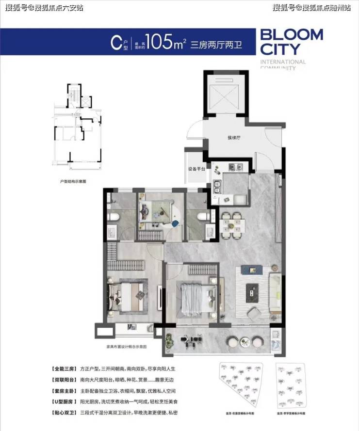 建面约80-130㎡户型空间,从灵活功能大双居,到三口之家、二胎家庭、进阶改善等,满足不同家庭需求。