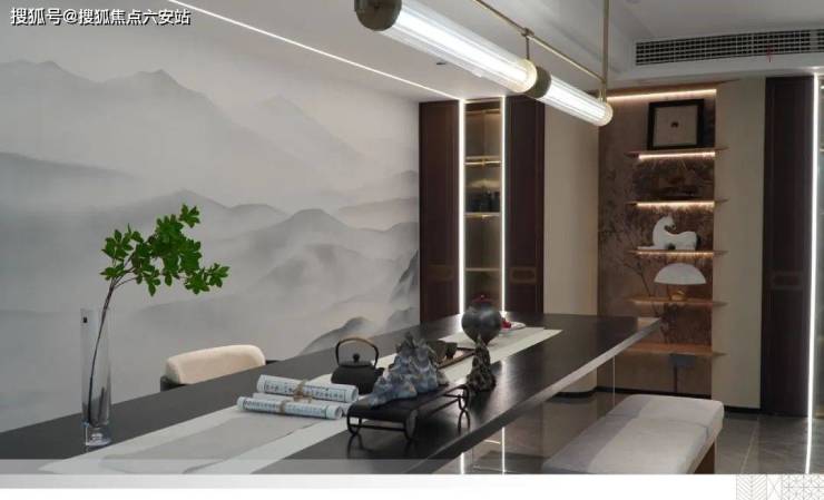 样板房以「社交主场」与「家族传承」为双核,以国际化审美打造新亚洲风格家族生活空间。样板房多采用熊猫纹撞色大理石、鎏金铜艺、原木系实木拼接地板等为色调,构建出流动、简约的艺术空间。