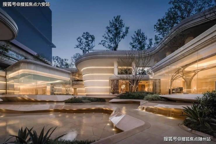 项目由 GAD杰地设计合伙人廖小华 牵头建筑总设计,外立面以“站立的江潮”为灵感,采用双曲面石材与蓝灰色LOW-E玻璃。园林由奥雅设计团队操刀,以《溪山行旅图》为蓝本打造15米高差飞瀑景观。室内设计团队融合 贝聿铭钟爱的洞石 与奥特曼米黄石材,通过哑光、荔枝面等工艺处理提升空间质感。