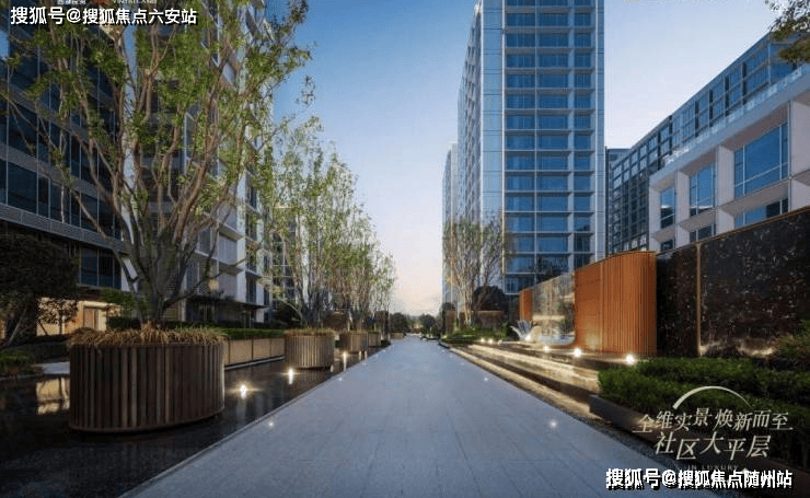 穿过大门,便是一道巨幅叠水景墙;挺拔的迎宾树阵与其对望,串起动静结合的归家动线。