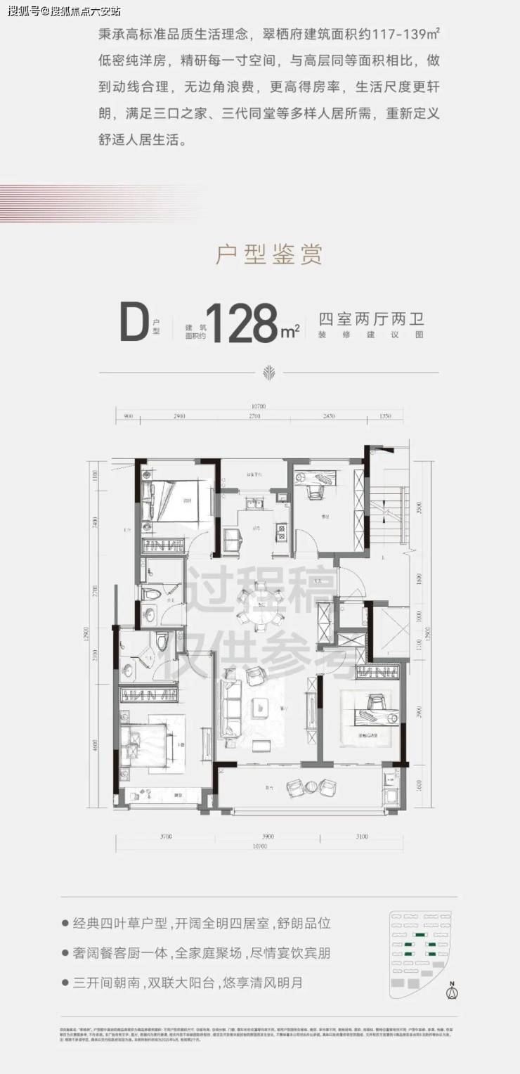 90%得房率:全系户型采用短进深、大面宽设计,空间利用率极高,117㎡实际可用面积接近130㎡,139㎡更可拓展出“3+1”灵动空间;