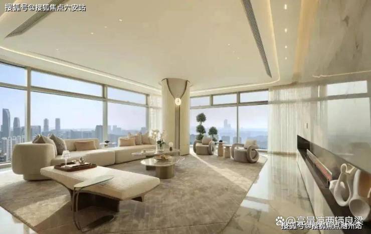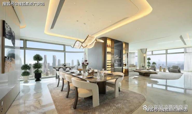 表现在商业大户型上,超93%的得房率,远超行业平均水平,让每一寸空间都物尽其用。约24米的巨幕落地窗将城市景观毫无保留地引入室内,双夹胶四层超白弧形水晶玻璃兼顾了美学与功能性,有效隔绝紫外线与噪音,强化地标的艺术感与辨识度。超大中央岛台的设计借鉴了美式别墅的布局,重新定义了家庭社交中心,进一步拓展了家庭互动场景边界。