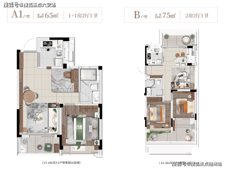 #### **建面约65㎡「玲珑」:两房两厅,总价80万起**