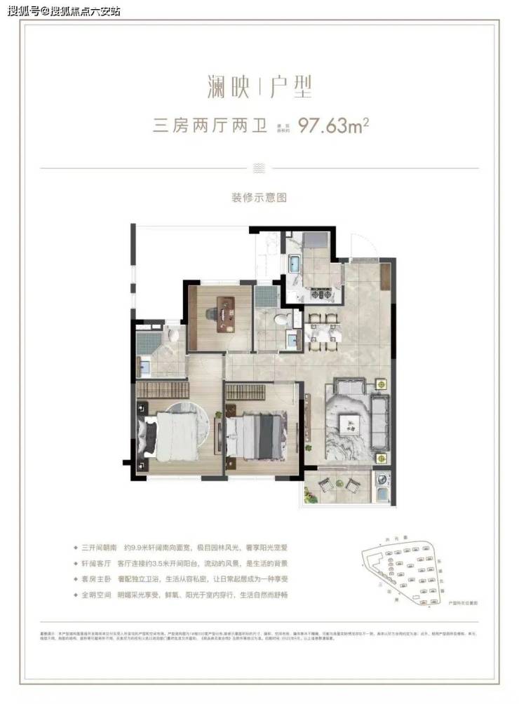建面约98方边套户型,客餐厅配大飘窗,更适合喜欢大社交的业主;而三开间朝南中间套,更适合平均分配冬日暖阳的家庭;