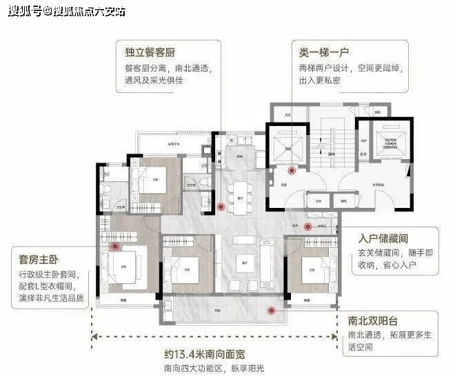拥四大核心优势:稀缺类1T1户设计,私密入户体验;独立储藏间,收纳有序;约13.4米南向大面宽,明阔日常;LDKB设计,场景联通,多变生活。更有亮点设计——灵动X空间,定制不同家庭的改善所需;公卫干湿分离、主卧L型衣帽间呵护生活细节。