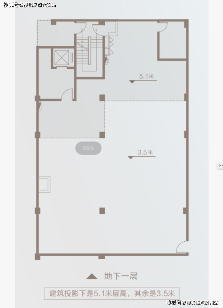 地下社交:层高约5.1m、局部约3.5m,可作企业康养乐活空间