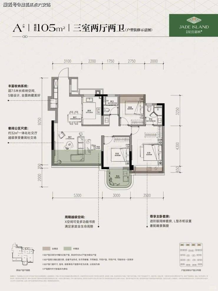 其实,星宜嘉映府从建面约105m²到172m²的户型跨度,是一套全明星户型组合,包括约172m²户型的实际使用率,也达到了约95%。