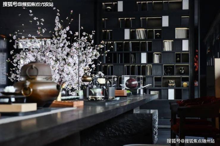 在下沉庭院旁,令人眼前一亮的是“独具赏梅观景体验”的阅读厅。大面积的观景玻璃正对下沉庭院的水景,业主可以在这里一边品茶,一边欣赏庭院内的梅花美景,感受时间的流动,将自然与人文完美结合,想象中的“极致人文雅致”,在这里具象化。