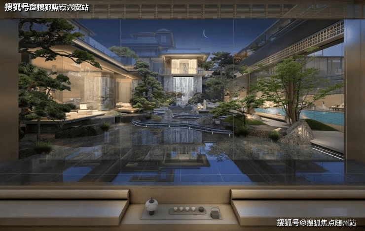 漫步于光影交织的幽静庭院,您将踏入一方充满诗意的天地。潺潺流水映照着婆娑树影,挺拔树姿为这片空间注入向上的生机,纵向延伸出无限的视觉张力。这座下沉庭院,不仅拉近了建筑与自然的情感共鸣,更使室内与景观紧密相连、和谐相融。每一扇窗户,都犹如框中的一幅生动山水画。