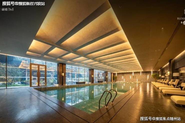 恒温泳池是会所的一大亮点,游泳体验更为宽阔、舒适;黑山石、梅花金属格栅等元素的植入,更是营造出自然汤泉的意境。