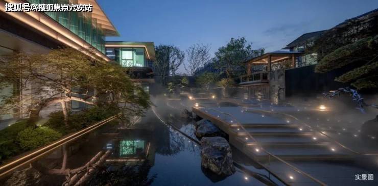 晨起时,薄雾如轻纱般掠过罗汉松的枝桠,在蓝金坡屋顶上留下露珠的印记;午后的阳光穿过巨幕玻璃,在灰蓝陶瓦上投下斑驳的光影;待到夜幕低垂,檐角的风铃与溪涧的潺潺声交织成曲,将宋人的"山居四时"化作触手可及的日常。