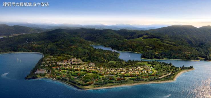 项目坐落于天溪湖旅游度假区核心景区印渚半岛之上,得天独厚的地理位置让它成为了杭州乃至整个长三角地区的居住度假胜地。这里三面环湖,北靠青山,山脉如一条巨龙蜿蜒至湖心,形成了坐山面水、玉带缠腰的独特半岛地貌。站在项目的高处,俯瞰天溪湖,湖水波光粼粼,倒映着蓝天白云和周围的青山,仿佛一幅流动的山水画。