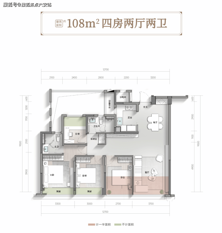 左右滑动查看更多 | △约108㎡A户型样板房展示示意图